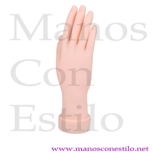 Mano flexible de latex para practicar las técnicas de modelaje de uñas de gel y uñas de porcelana. Los dedos son flexibles para poder moverlos. Puedes colocar la mano bajo la lampara UV las veces que sean necesarias.